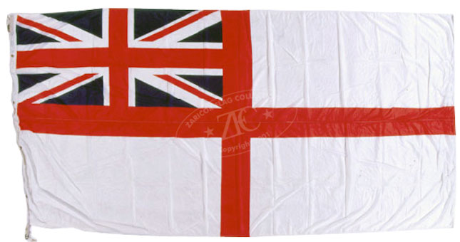 ZFC0140Â The United Kingdom was a vital component of the NATO naval forces in the North Atlantic. This Royal Navy White Ensign, from the 1960s, is from an unnamed Royal Navy vessel and was presented to the Star Spangled Banner Flag House and Museum in Baltimore, Maryland during the Cold War. Read more