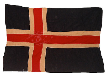 ZFC1058Â The Naval Ensign of the German Democratic Republic, was a red flag with a stylized version of the state flag centered. This ensign would have been used on small boats and patrol craft which ironically spent most of their time preventing East Germans from escaping to the West rather than defending the security of the GDR. Read more