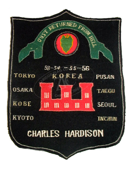 ZFC2052 This commemorative Jacket patch is not a “Blood Chitâ€, but rather modeled on one, this commemorative jacket patch details the Korean service of Charles Hardison, an engineer with the 24th Division, the first U.S. troops to enter Korea, 1953 to 1956. Read more