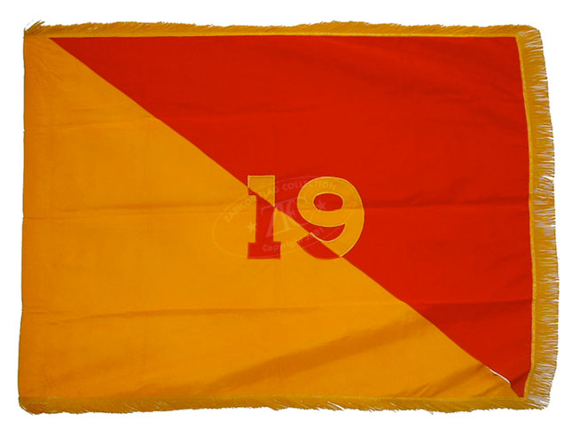 ZFC2413 This is the organizational color for the US Army’s 19th Artillery Group. US Army groups are similar to brigades but generally control smaller and fewer subordinate units, typically a mix of battalions and separate companies. The 19th Artillery Group operated Nike missile installations between 1961 and 1974, on both coasts during the Cold War. Read more