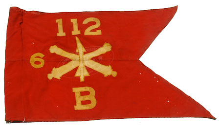 Cold War, the 112th underwent successive redesignations and reor- ganizations. While they were designated an Air Defense Artillery organization, Battery B of the 6th Battalion carried this Philadelphia Quartermaster Depot-made guidon; doubtless at one of the many Nike missile installations in New Jersey, perhaps under the 19th