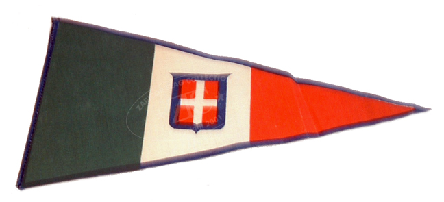 ZFC3151 - Italian Civil Pennant. Small pennants like this, bearing the uncrowned 1866 to 1946 Italian arms would have been used primarily for decorations or patriotic purposes. They could have also been used on small Italian pleasure craft or other small boats.